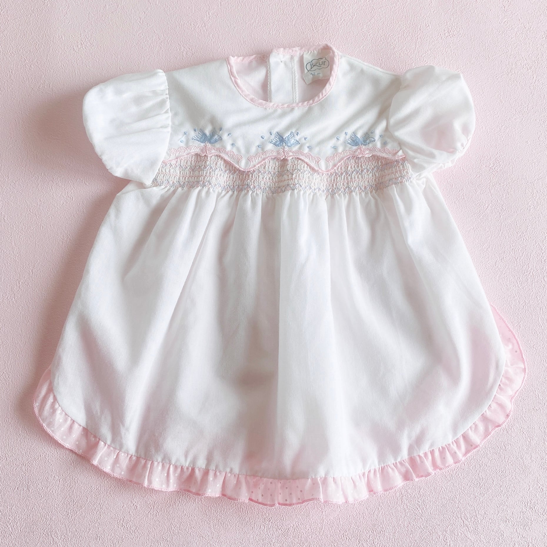 white baby pink blue smocking stiches dress 12M(80)